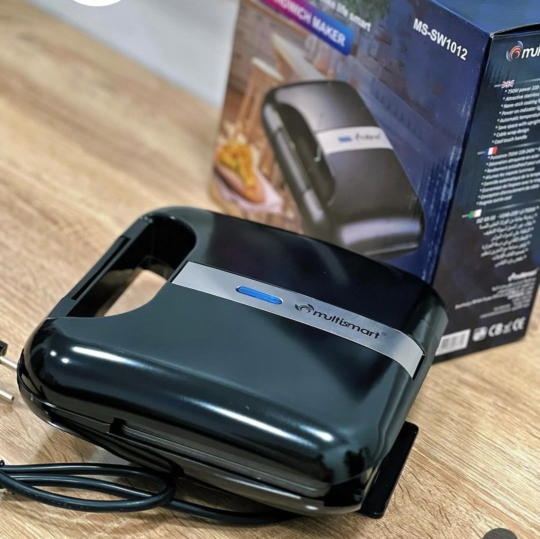 صانعة السندويتشات والشواء من Multismart، موديل MS-SW1012، جهاز عملي يجمع بين السهولة والأداء العالي لتحضير وجبات خفيفة ولذيذة في دقائق.
